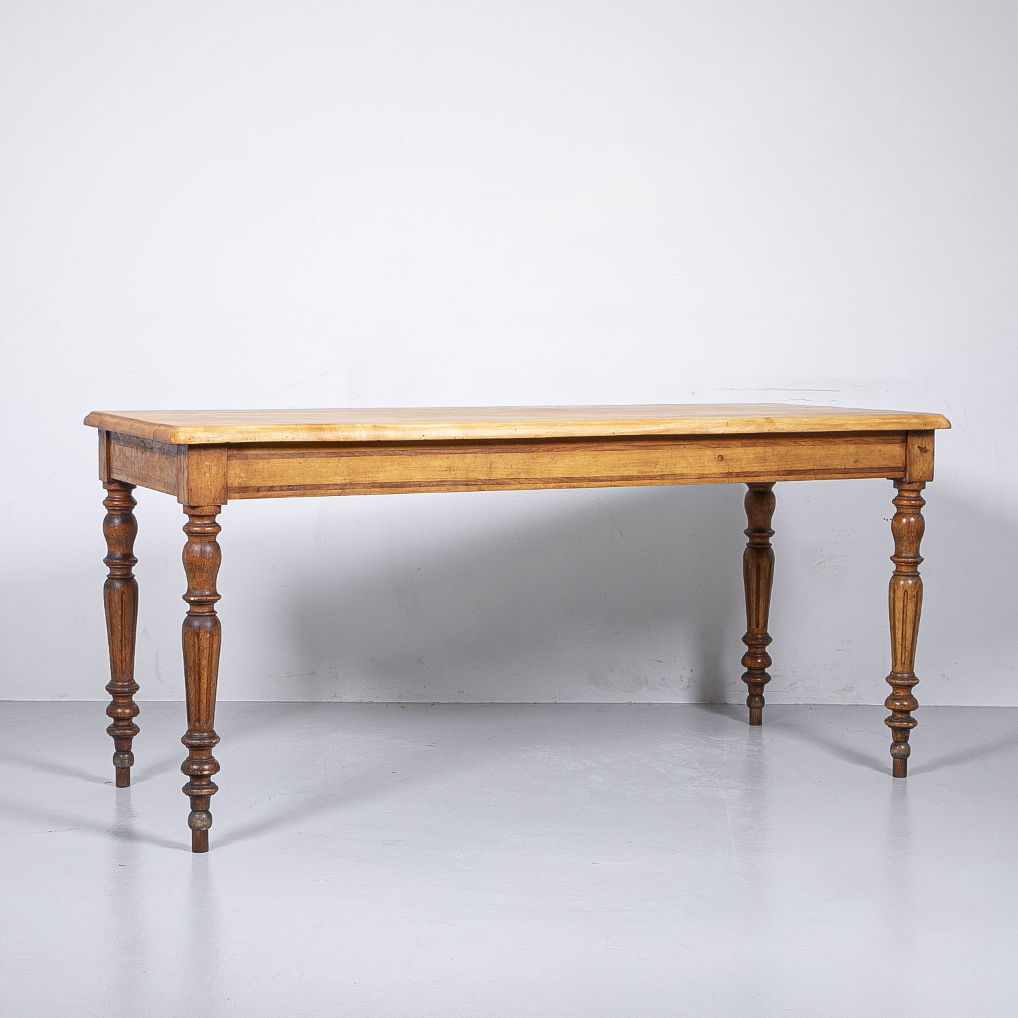 Ahorn Holztisch mit gedrechselten Beinen. Tischplatte aus Ahorn, in unserer Werkstatt geschliffen und geölt, Tischgestell aus Buche, mit Patina. Besichtigung in der Micasa Filiale Grüze, Winterthur.
