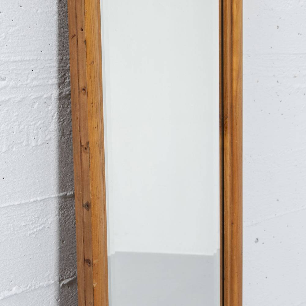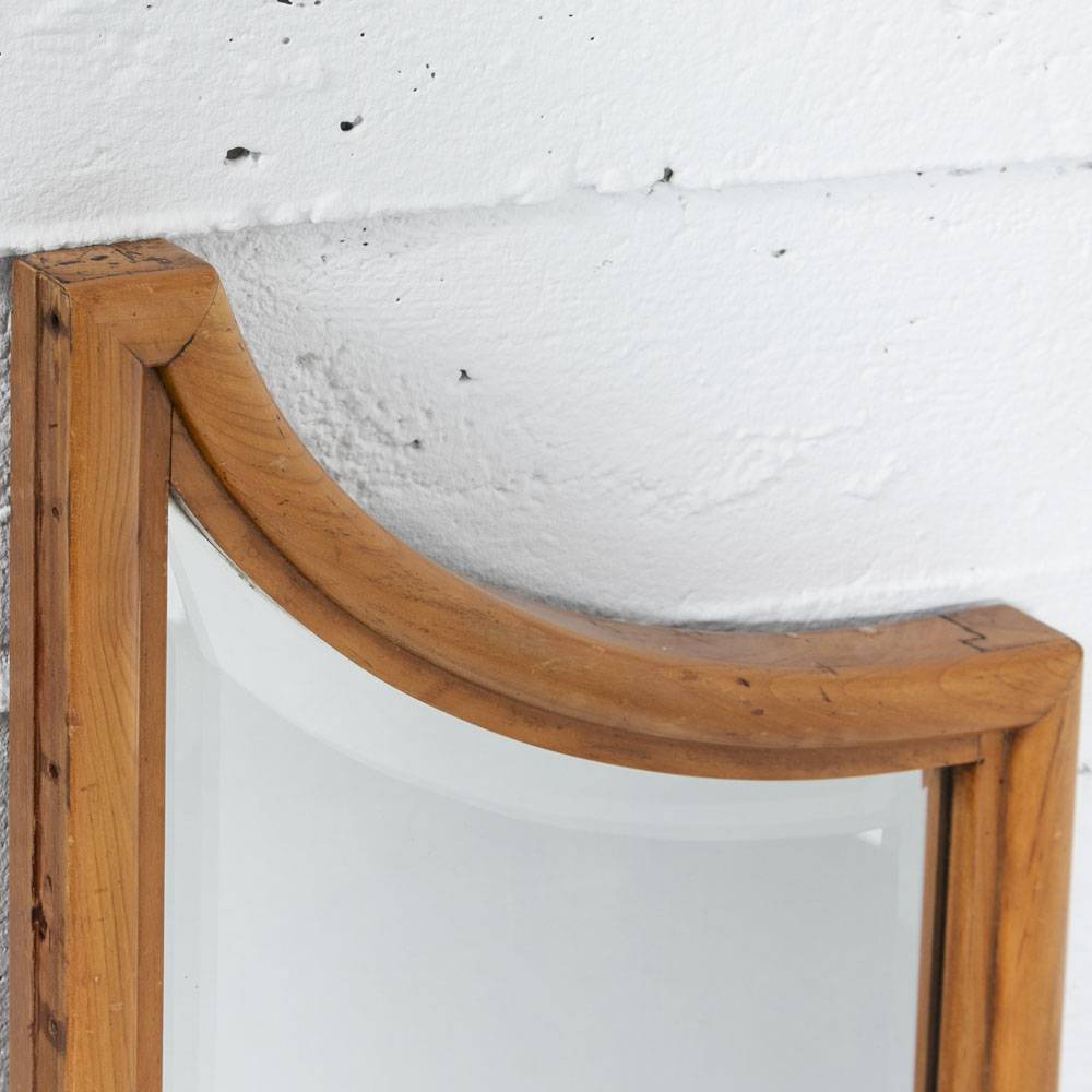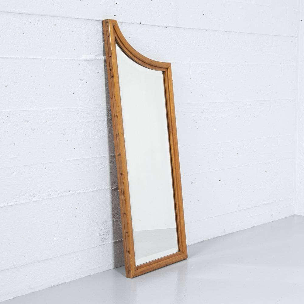 Asymetrischer Spiegel rechts. Rahmen aus massivem, lackiertem Nussbaumholz, Spiegel mit Facette.