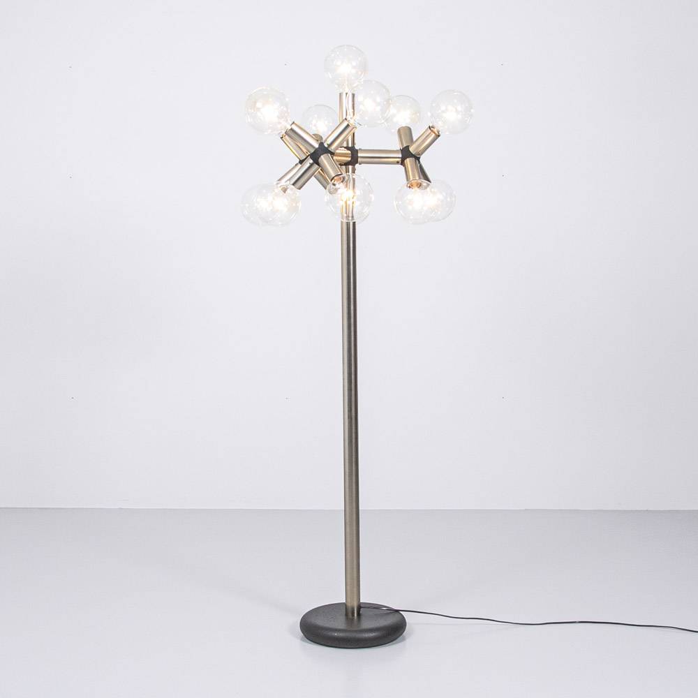 Atomic Stehlampe von Trix und Robert Haussmann für Swisslamps International. Aluminium mit schwarzen Kunststoff Gelenken und schwarzem Gusseisen Sockel. Schwarzes Kunsstoffkabel mit Dimmer. Dieses Objekt wird dem oben genannten Designer/Hersteller zugeschrieben. Es hat keine Kennzeichnung