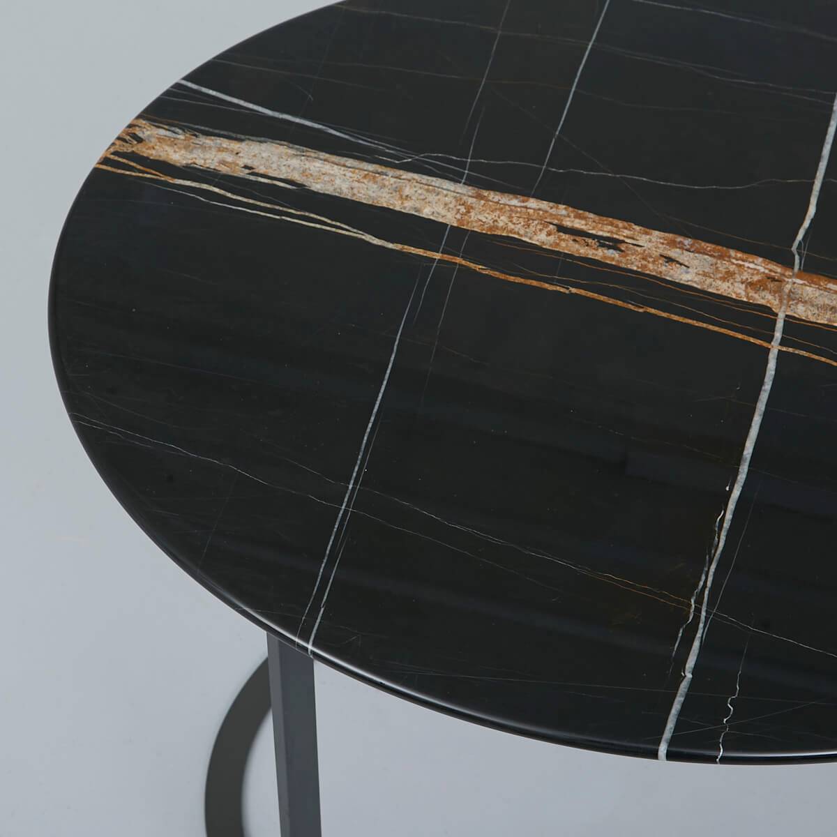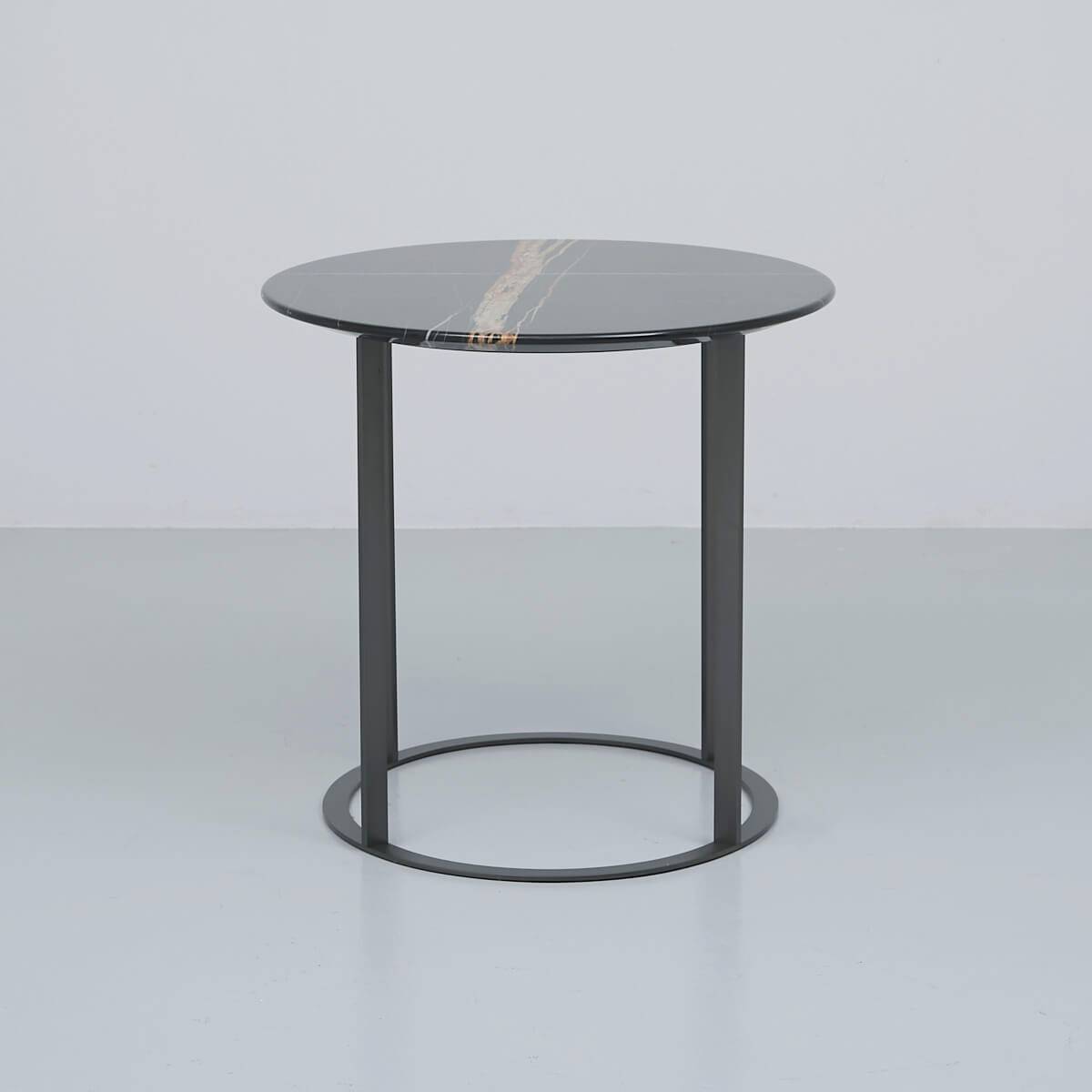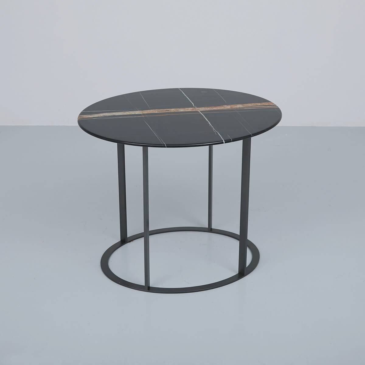 Beistelltisch Elios Maxalto. Design Antonio Citterio. Mit ovalem Deckblatt aus Marmor. Gestell aus hochglänzedem anthrazitfarbenem Stahl. Deckblatt mit Kratzspuren ansonsten guter Zustand.