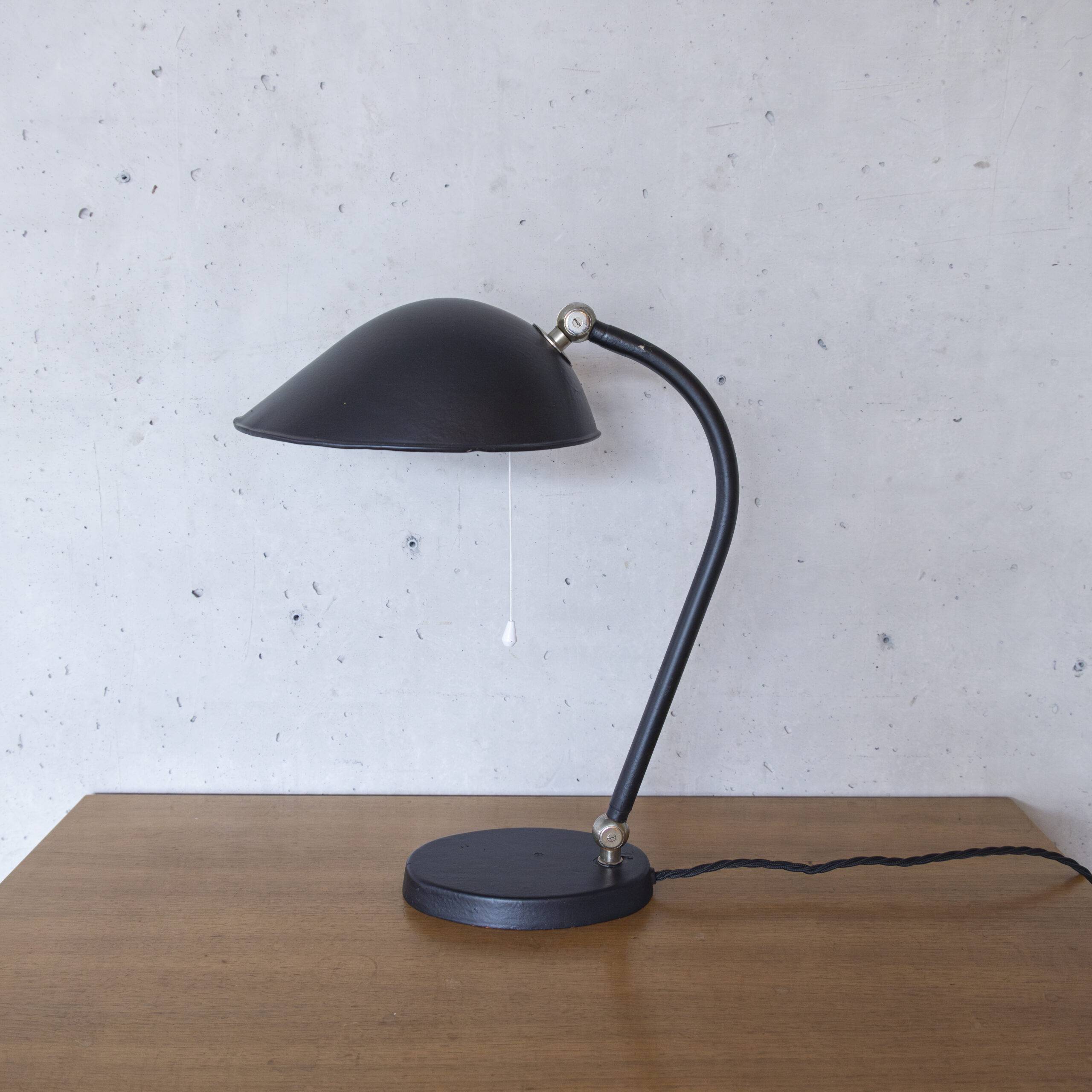 Schwarze Metall Schreibtischlampe von Belmag Schweiz. Schwenkbarer Lampenschirm. Lampe wurde nei lackiert und neu verkabelt. Kleiner Lackschaden. Dieses Möbel kannst du in der Micasa home Zürich-City, Löwenstrasse 31-35, 8001 Zürich von Montag bis Samstag 9 – 20 Uhr besichtigen und kaufen. Mehr Info