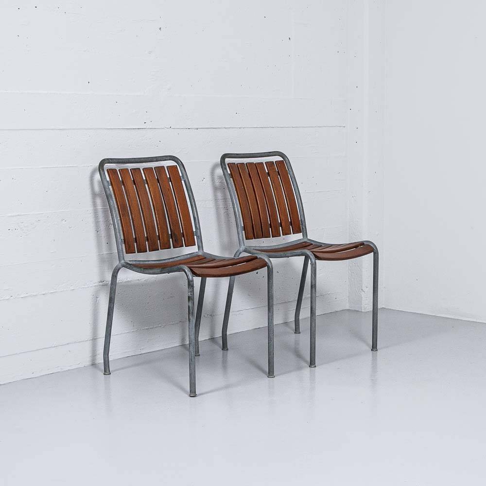 Bigla Gartenstuhl mit braun lasierten Buchen Holzlatten auf feuerverzinktem Stahlrohrgestell. Stuhl ist platzsparen stapelbar. Preis pro Stuhl.