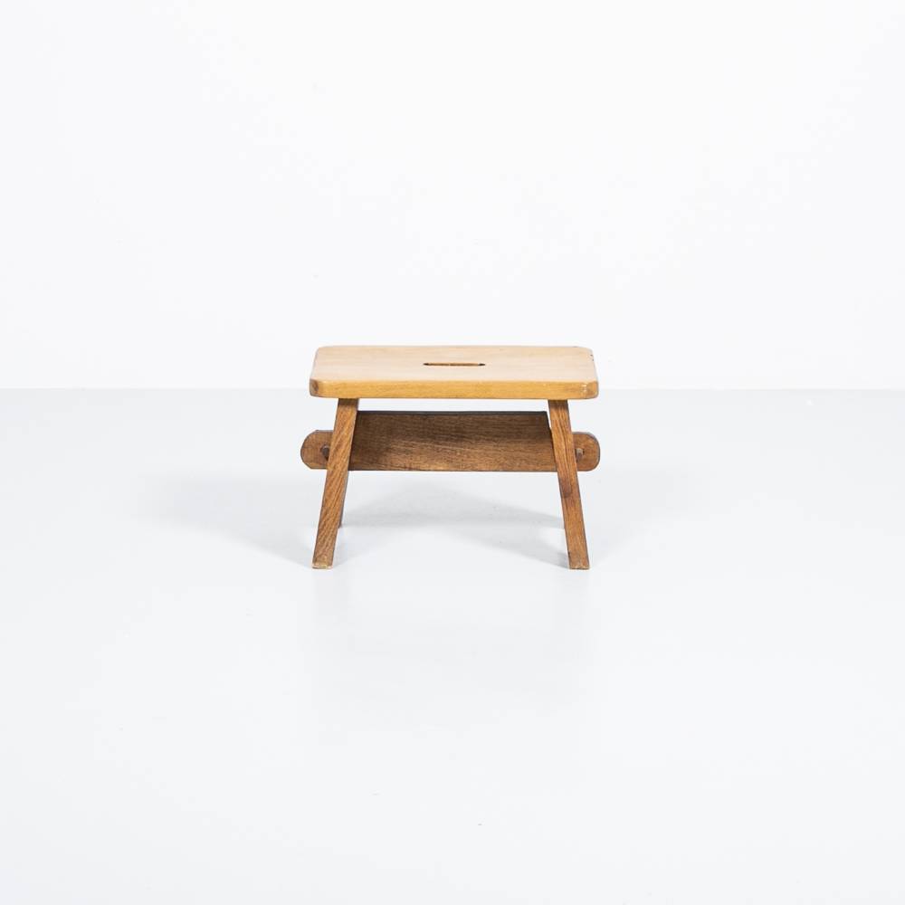 Buchen Schemeli aus Massivholz. Platte lackiert, Gestell gebeizt und lackiert. Guter Zustand mit wenigen Gebrauchsspuren.