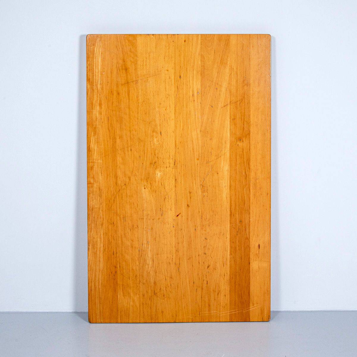 Buchenplatte mit Spalt, 150 x 65 cm. Platte aus massiver, rot gebeizter und lackierter Buche mit Karniskante. Materialstärke 2.2 cm.