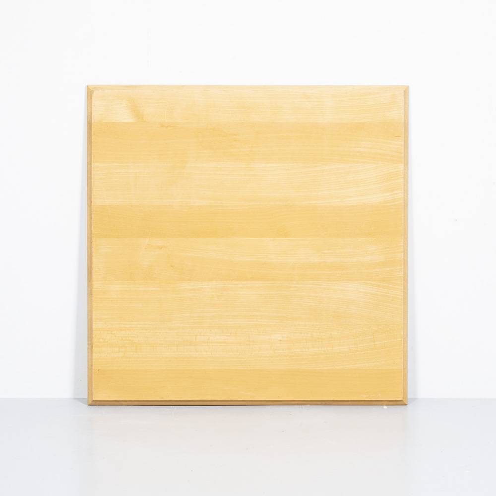 Buchentischplatte mit Karniskante, 80 x 80 cm. Hergestellt aus massiver, lackierter Buche. Materialstärke 3 cm. Guter Allgemeinzustand.