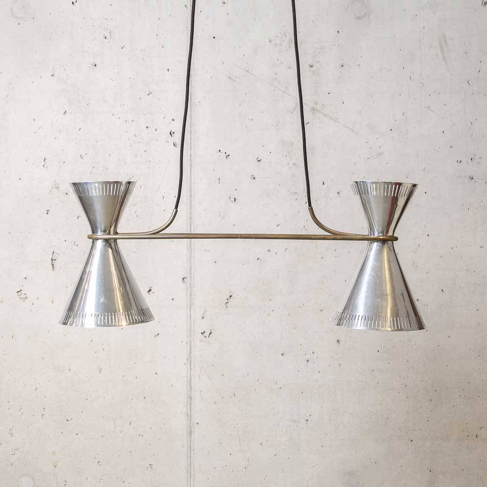 Deckenlampe mit polierten Blechschirmen 1950