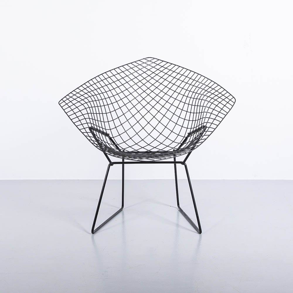 Diamond Lounge Chair Harry Bertoia, produziert von Knoll. Gestell und Sitzschale aus schwarzem Stahl. Mit Gebruachsspuren. Preis pro Stück.