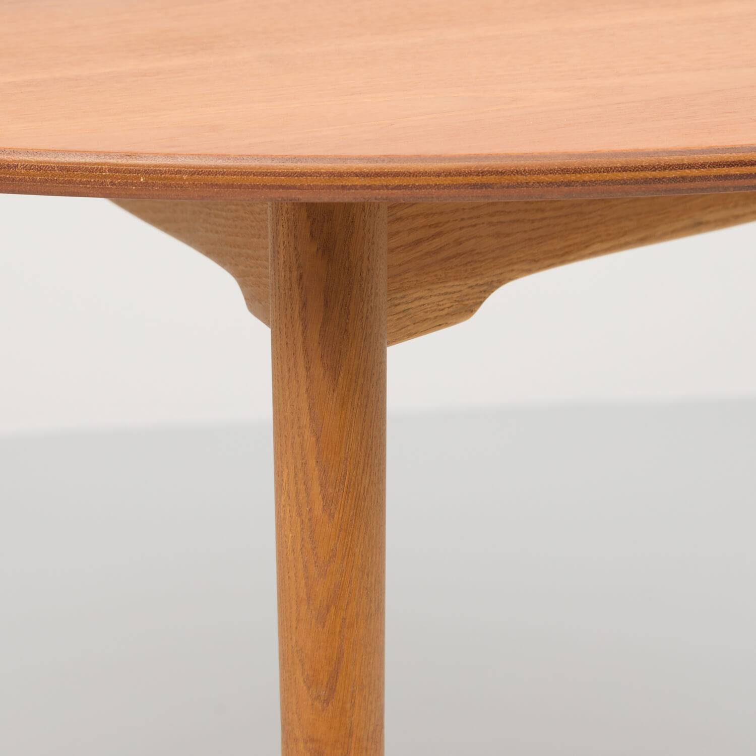 Dreibeiniger Tisch FH4602 von Hans J. Wegner hergestellt durch Fritz Hansen. Deckblatt aus massivem Eichenholz, demontierbare Beine aus massivem Teakholz. Sehr guter Zustand.