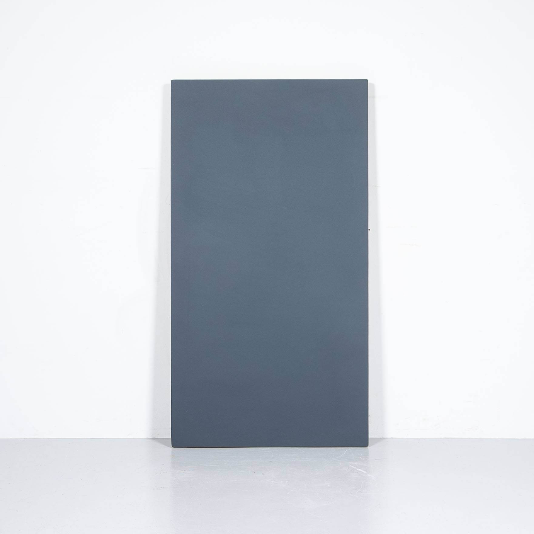 Dunkelblaue Linoplatte 130 x 70 cm. Platte aus Holzwerkstoff mit Kanten aus massivem Buchenholz, die Platte wurde in unserer Werkstatt mit dunkelblauem Linoleum beklebt. Materialstärek 2.6 cm.