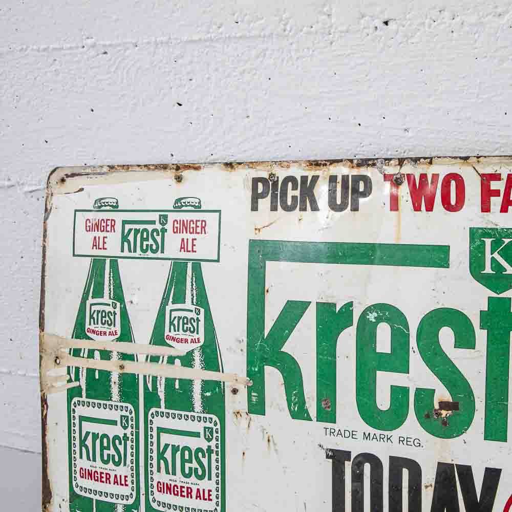 Rechteckiges Emailleschild mit Krest Ginger Ale Schriftzug und schöner Patina. Besichtigung in der Micasa Filiale Dübendorf.