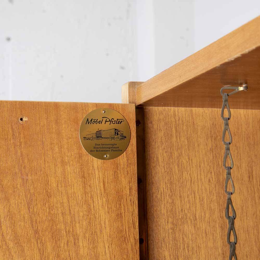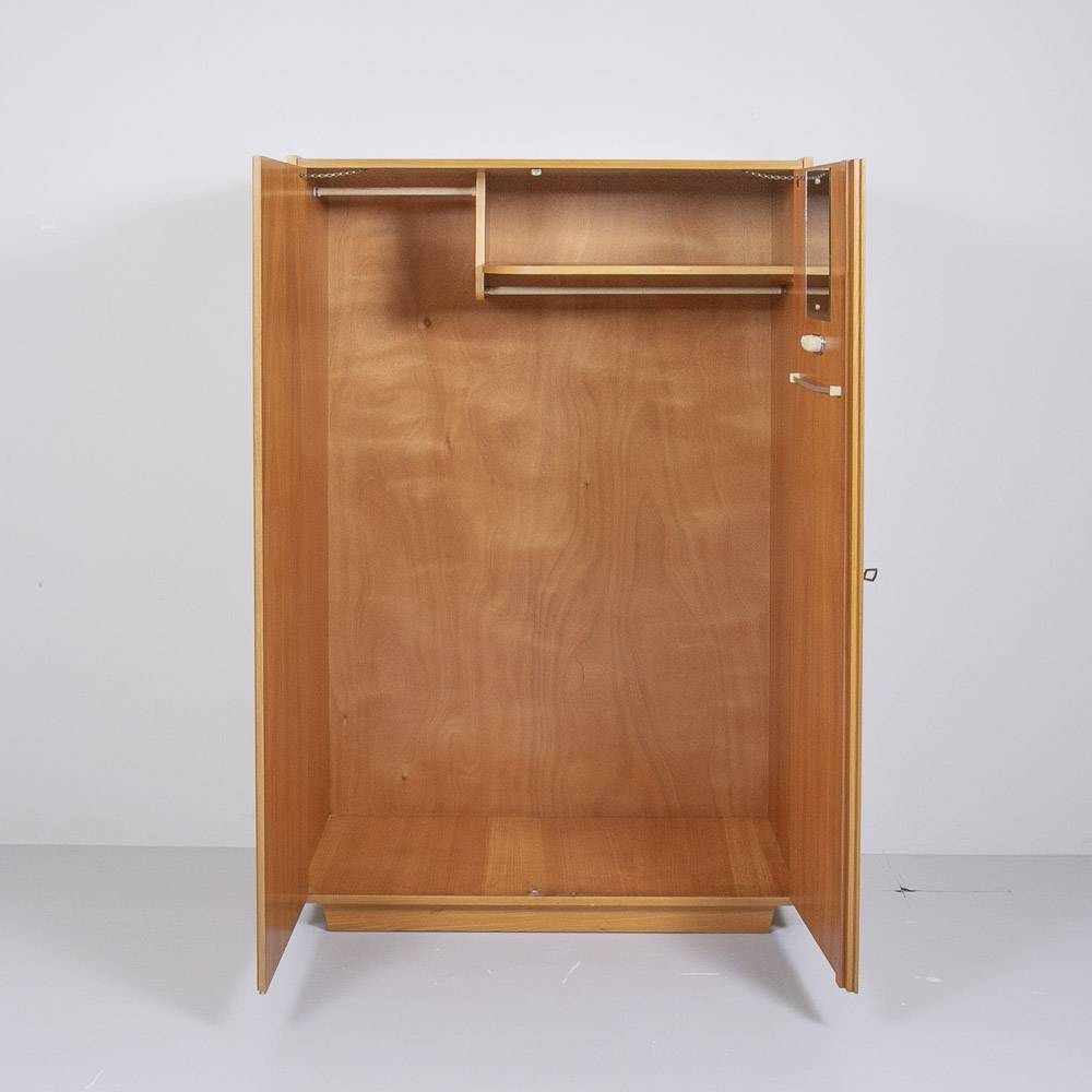60er Jahre Kleiderschrank von Möbel Pfister aus Esche Furnier. Mit abschliessbaren Türen. Innen Teak Furnier. Mit Kleiderstange, Spiegel und Kravattenhalter. Guter, gebrauchter Zustand mit kleinen Furnierschäden