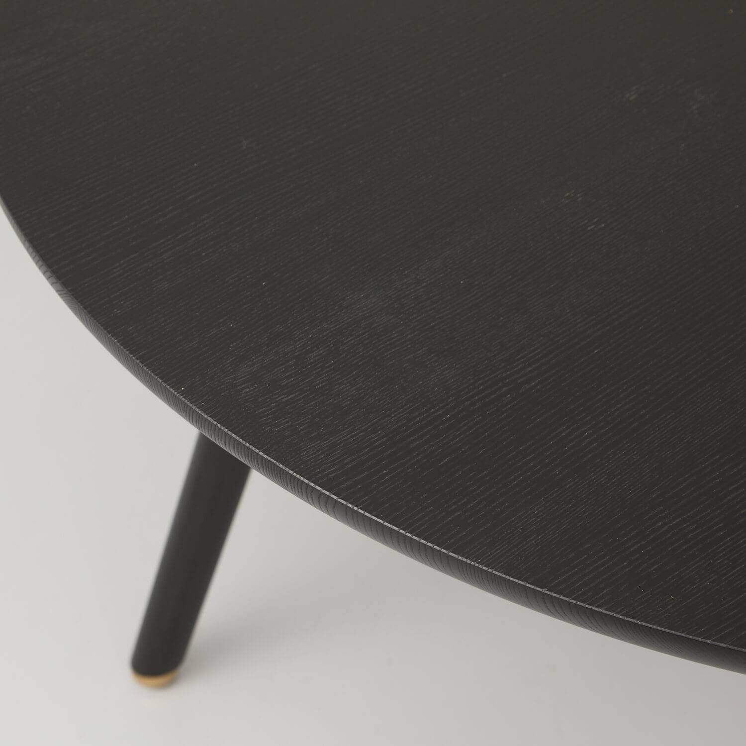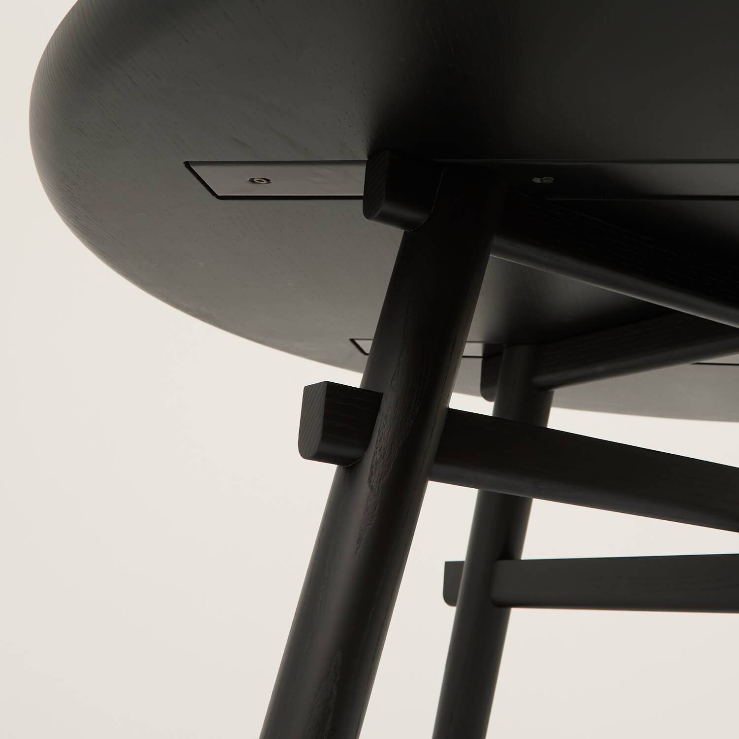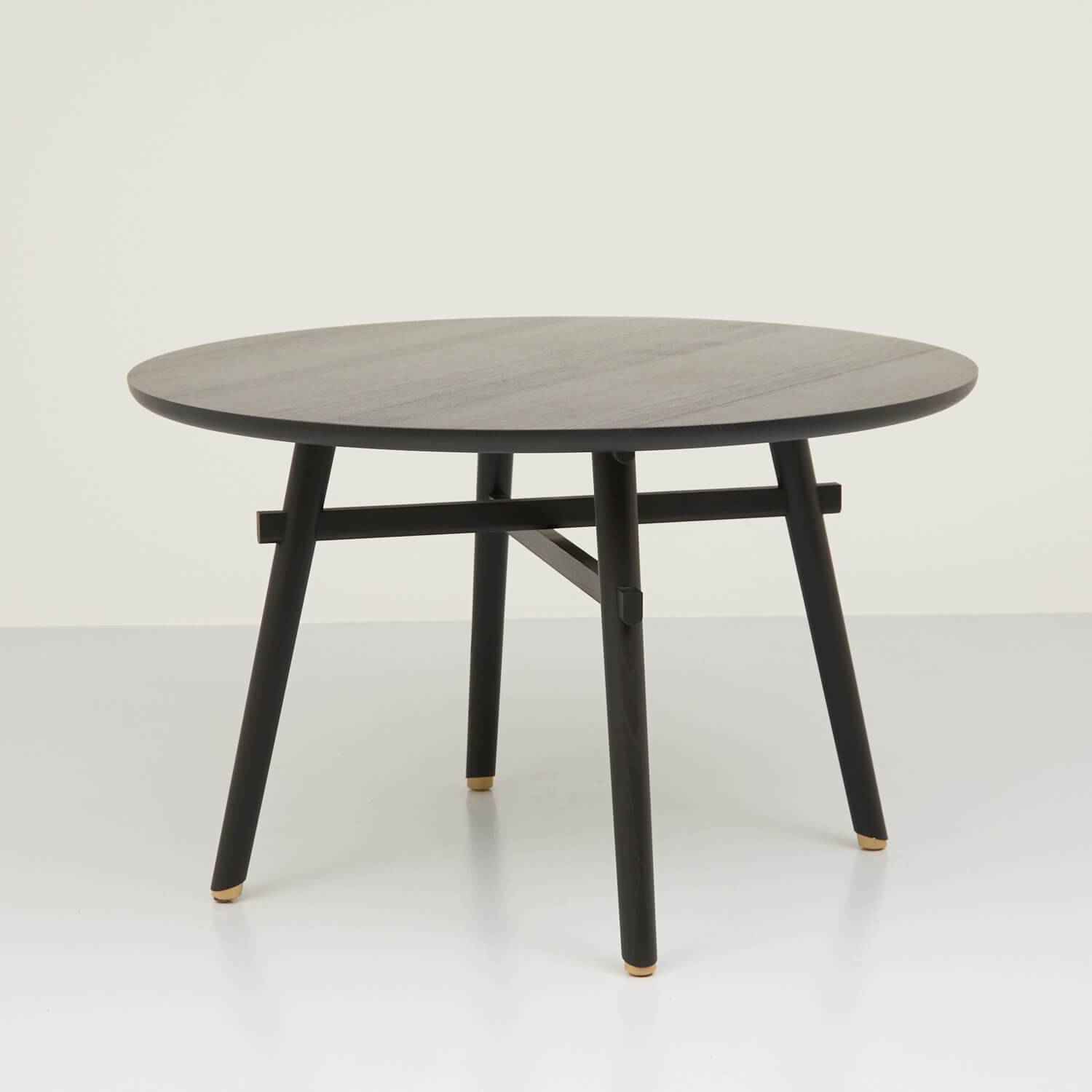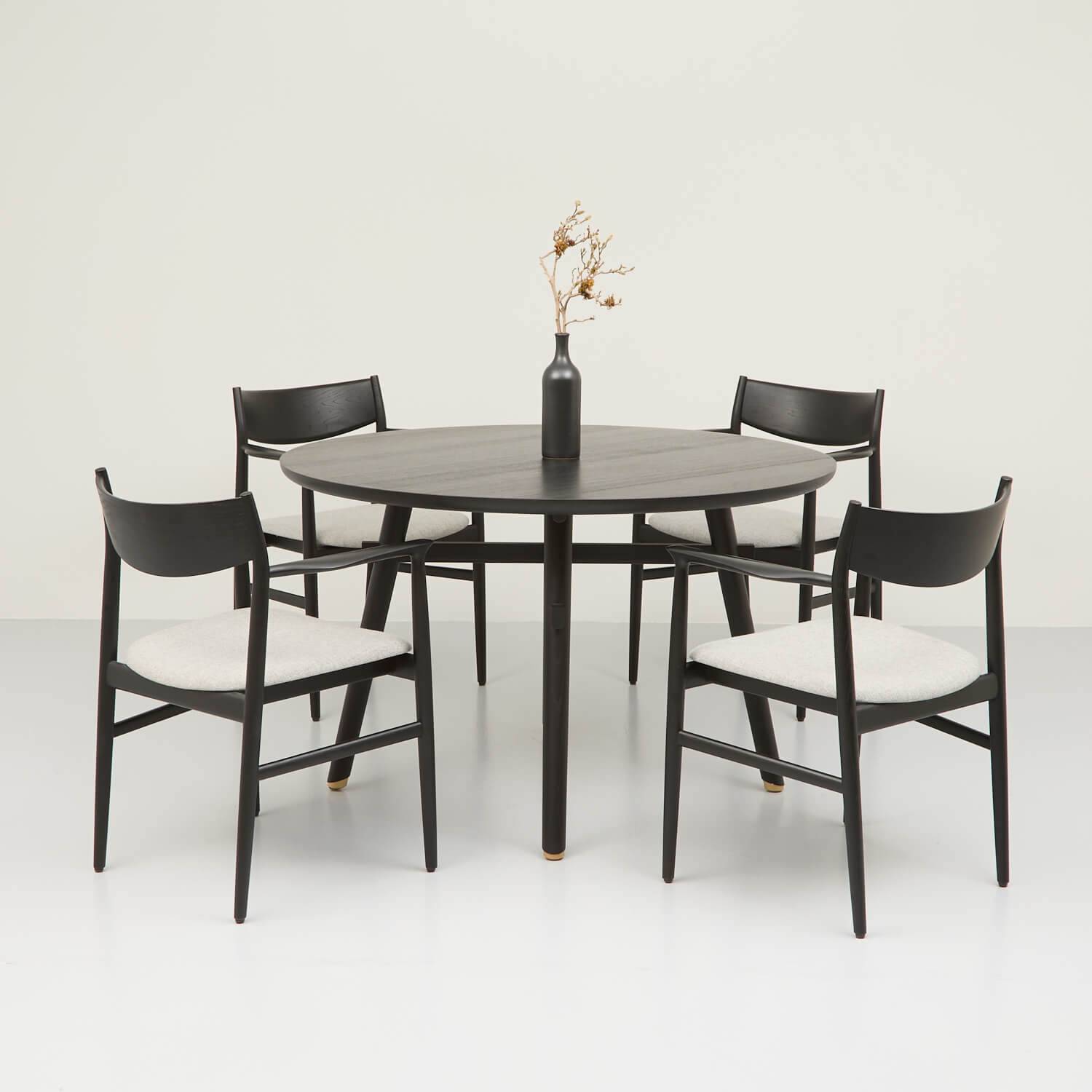 Esstisch Oscar 120cm im Durchmesser. Hergestellt durch Zoom by Mobimex, Design Werner/Vàzquez Studio. Der Tisch wurde aus massiver Kernesche gefertigt und ist nachtschwarz gebeizt. Das Deckblatt ist demontierbar. Wenig Gebrauchsspuren auf dem Deckblatt. Sehr guter Zustand.