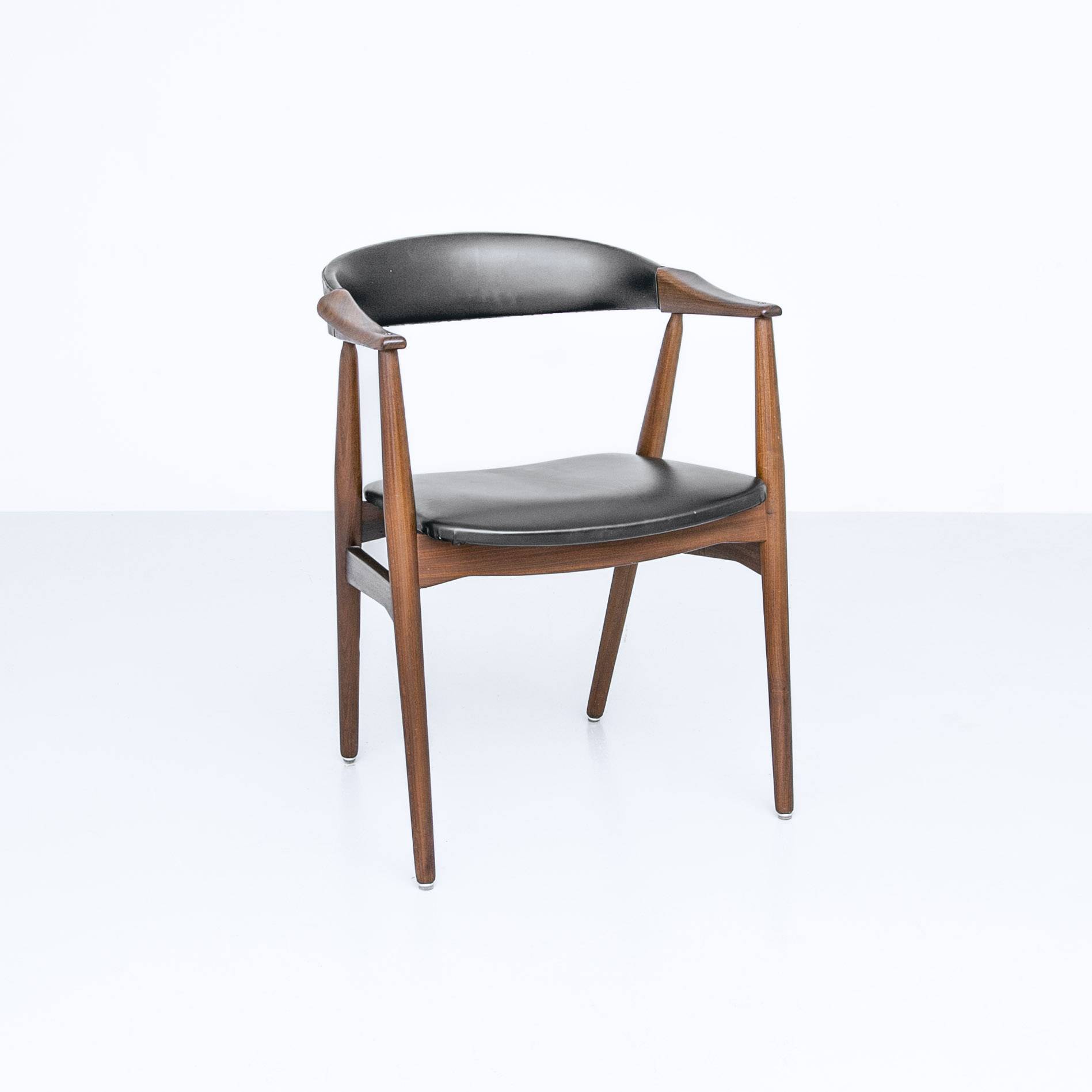 Farstrup Armlehnstuhl, entworfen von Thomas Harlev. Gestell aus massivem Teakholz, Sitzfläche und Rückenlehne mit schwarzem Kunstleder bezogen. Guter Zustand.