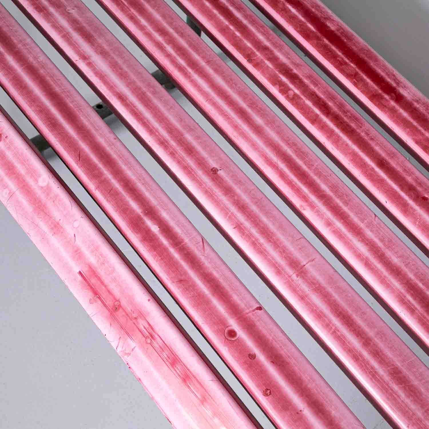 Gartenbank mit Kunststofflatten 235 cm. Gestell aus verzinktem Rundeisen, Latten aus Kunststoff. Endkappen der Latten fehlen teilweise. Die Bank kann nicht frei stehen, Platten zur Bodenmontage auf Wunsch erhältlich.