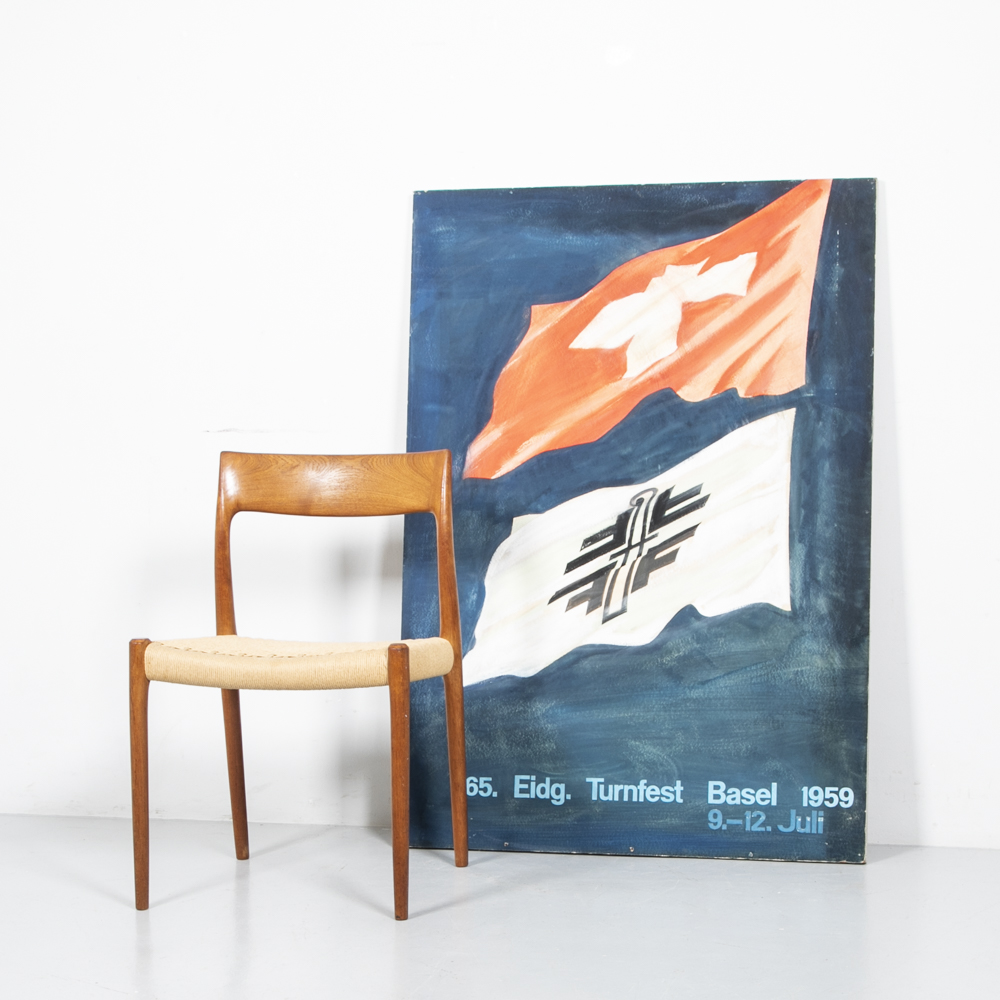 Handgemaltes Plakat Turnfest Basel. Massiver Keilrahmen aus Holz mit Kartonage beklebt.