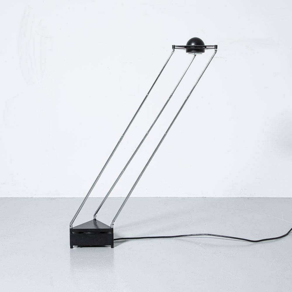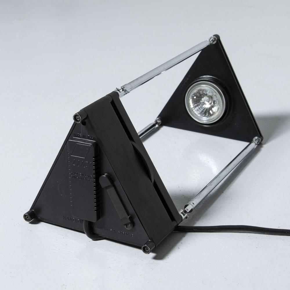 Kandido Tischleuchte Luci Italia, nach einem Entwurf von Porsche Design aus den 1980er Jahren. Sockel aus Kunsstoff, drei Teleskopstangen aus verchromtem Stahl, Lampenschirm aus Kunststoff. Guter Zustand.