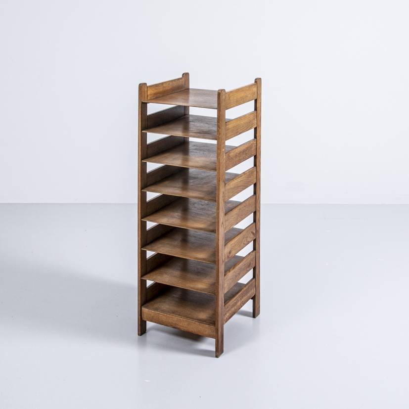 Kleines Regal mit 8 Tablaren aus Eiche, dunkel gebeizt