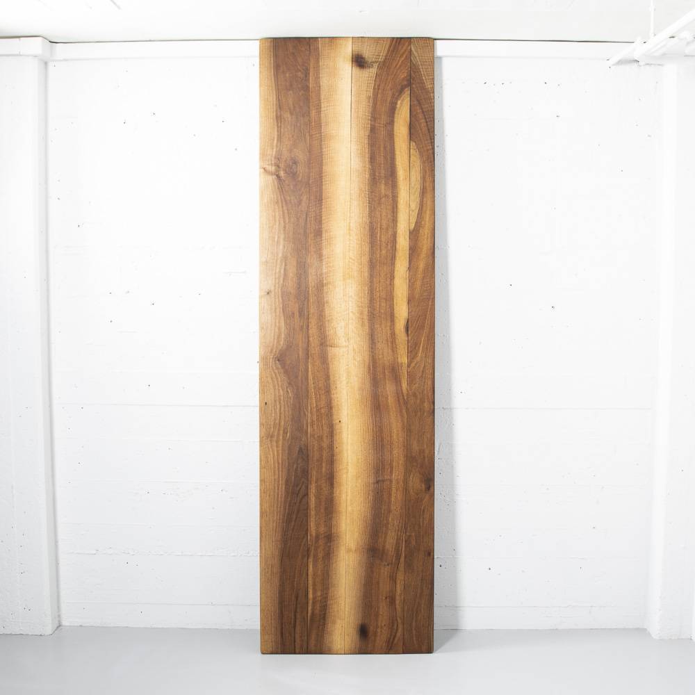 Lange Nussbaumplatte, 237 cm x 67 cm . Die Oberfläche wurde in unsere Werkstatt geschliffen und geölt. Die Stärke der Platte beträgt 2,5 cm.