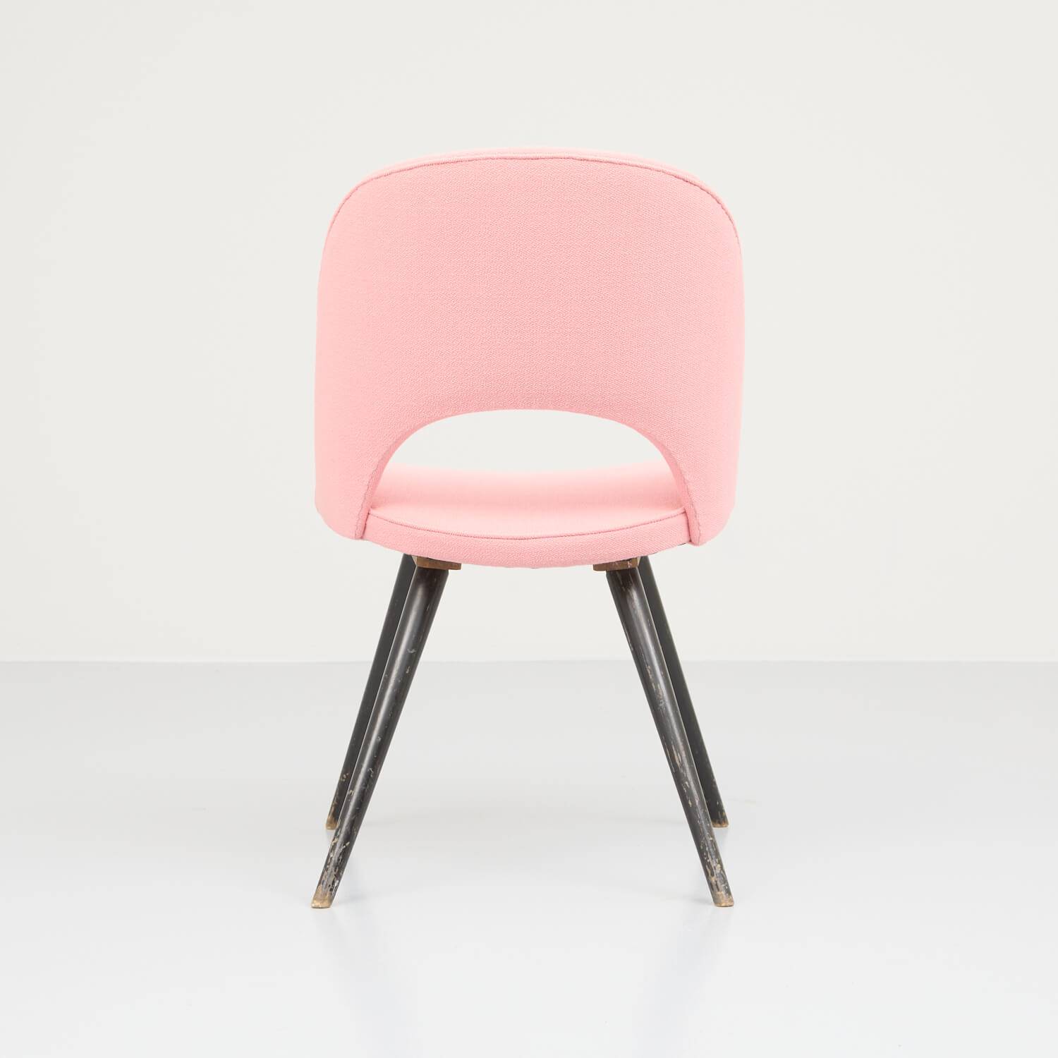 Polsterstuhl von Thonet aus den 60er Jahre mit neuerem Bezugsstoff in Pink. Beine Massivholz schwarz mit Patina. Insgesamt sehr guter Zustand.