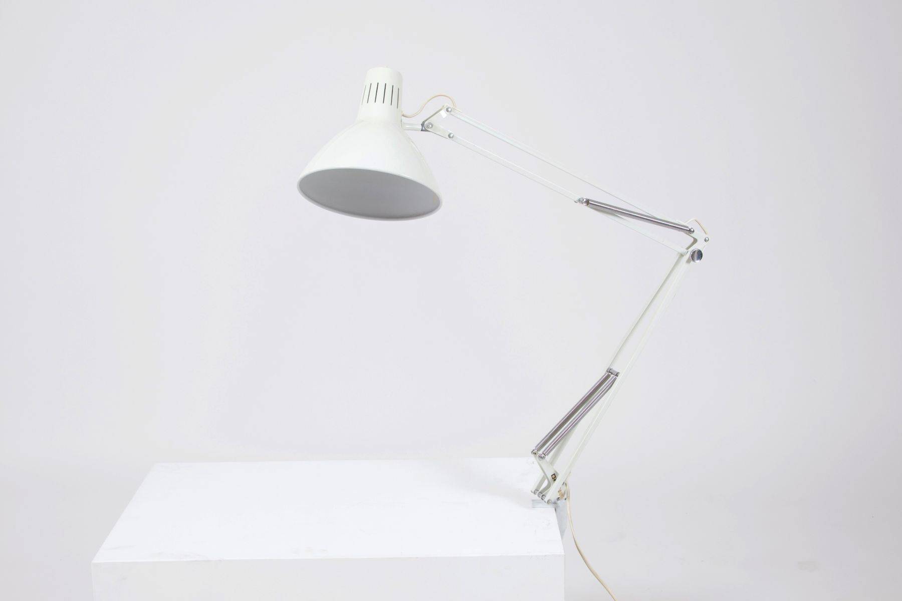Diverse weisse Schreibtischleuchten mit Gebrauchsspuren. Symbolbild
