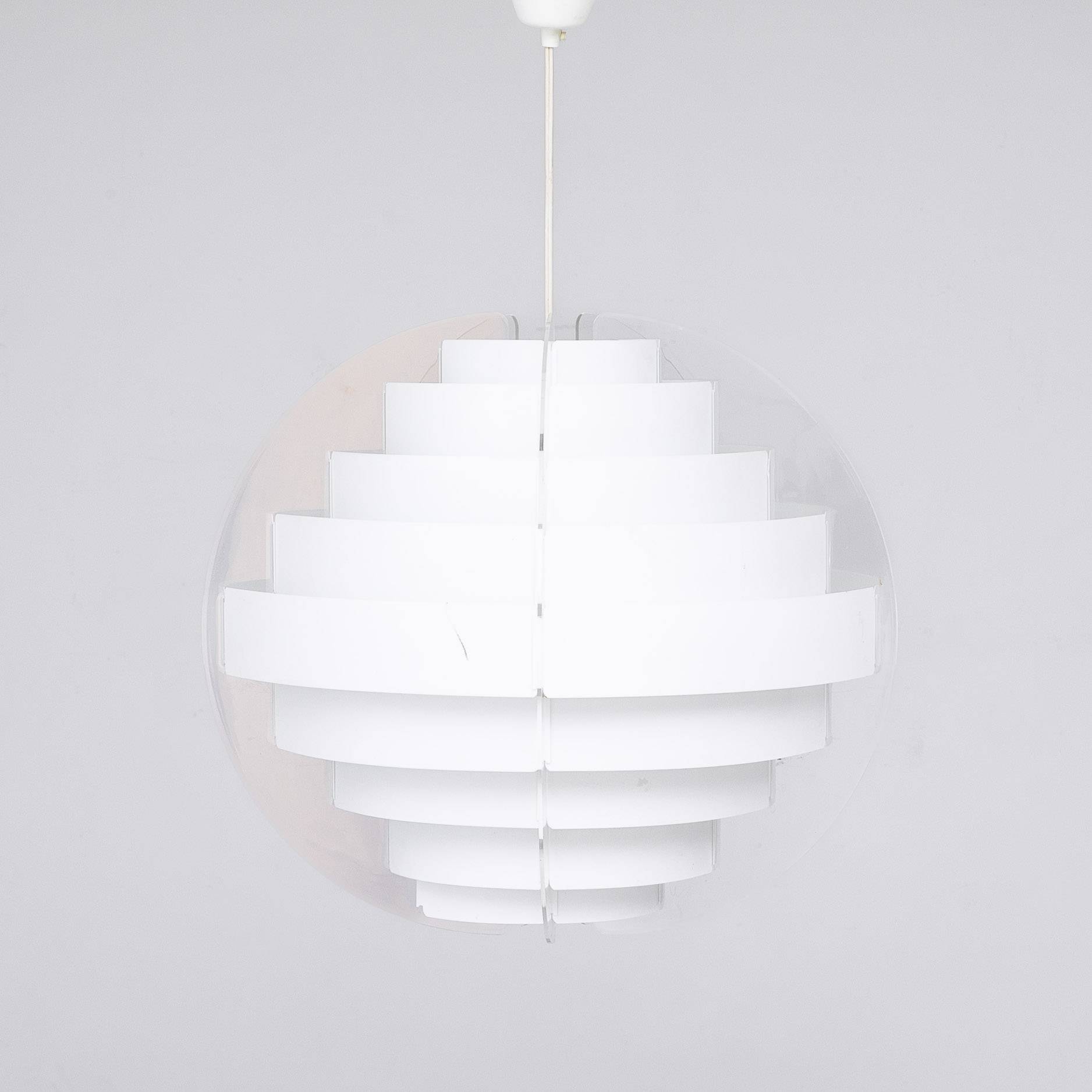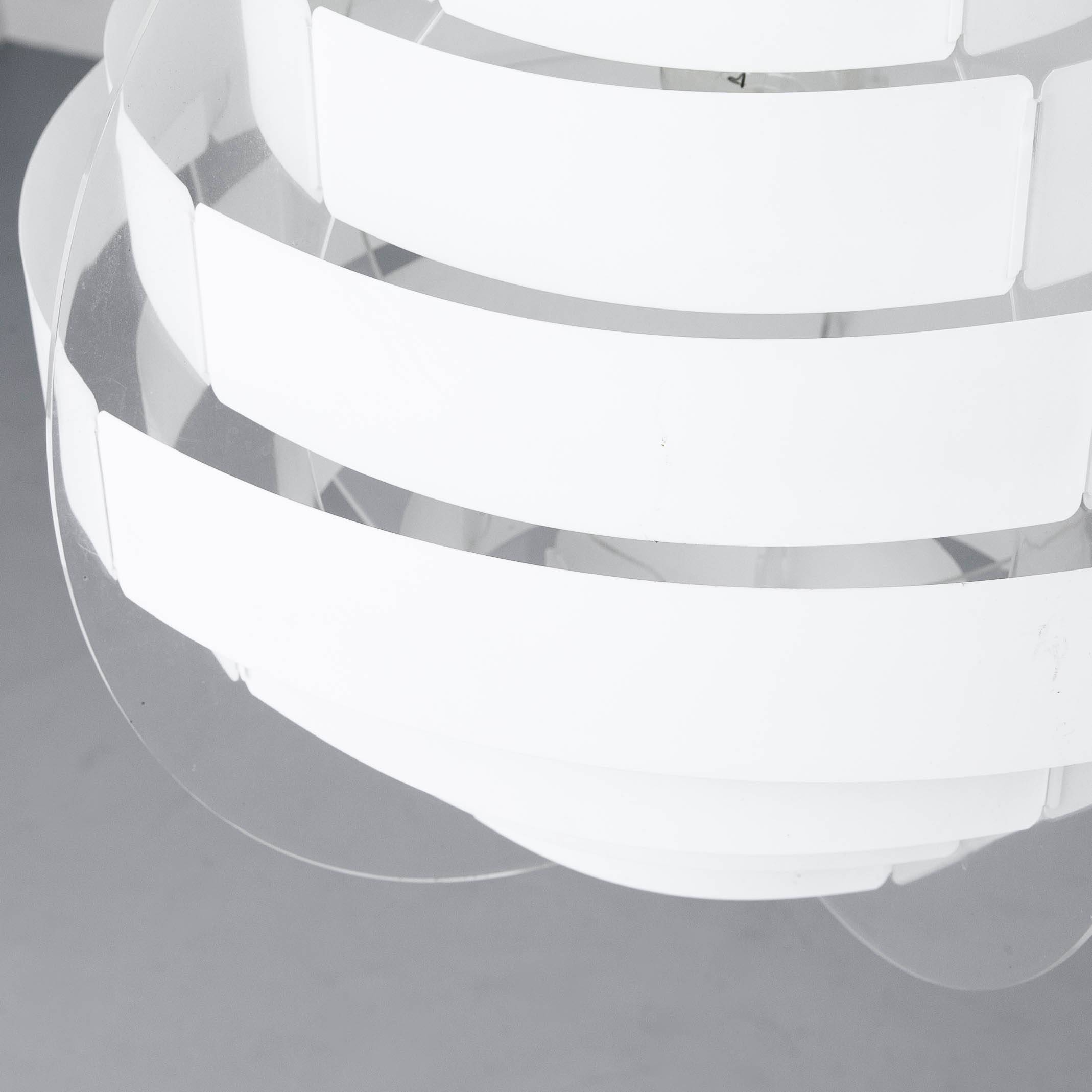 Runde Kunststoff Deckenlampe. Gefertigt aus transparenten Acrylscheiben und weissen Kunststofflamellen. Mit leichten Gebrauchsspuren.