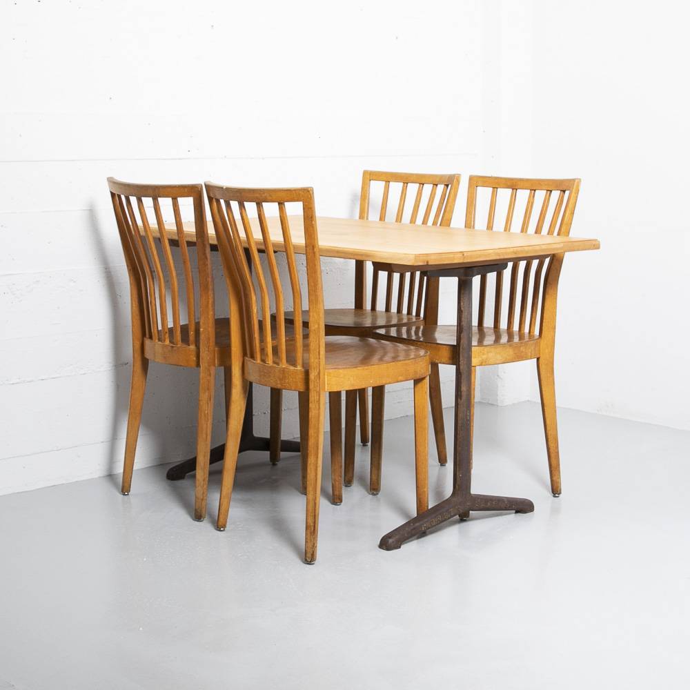 Stabellenstuhl von Horgen Glarus. Beine und Lehne aus massiver Buche, Sitzfläche aus Formsperrholz. Stückpreis.