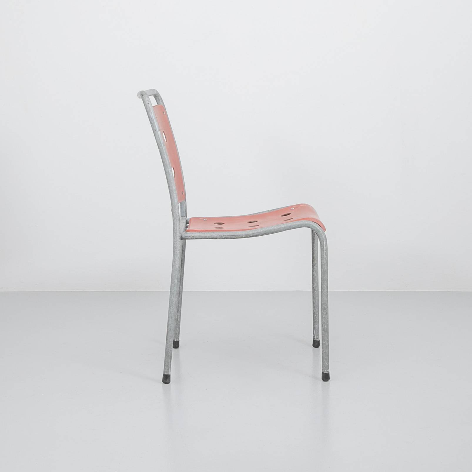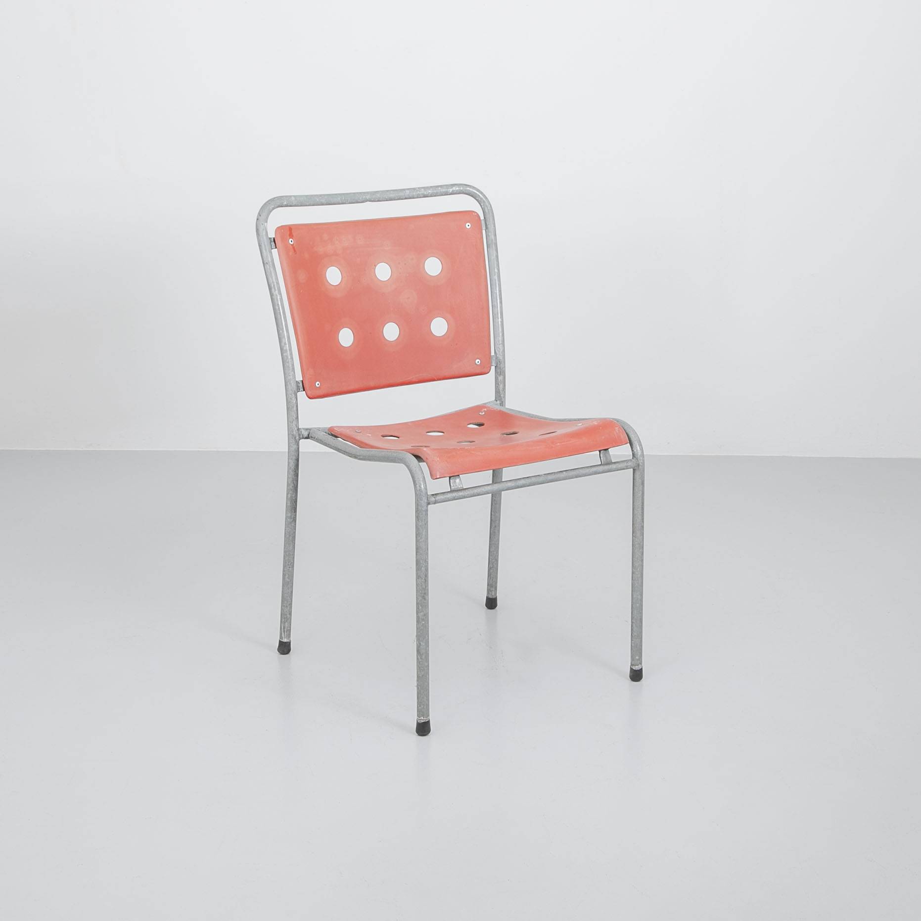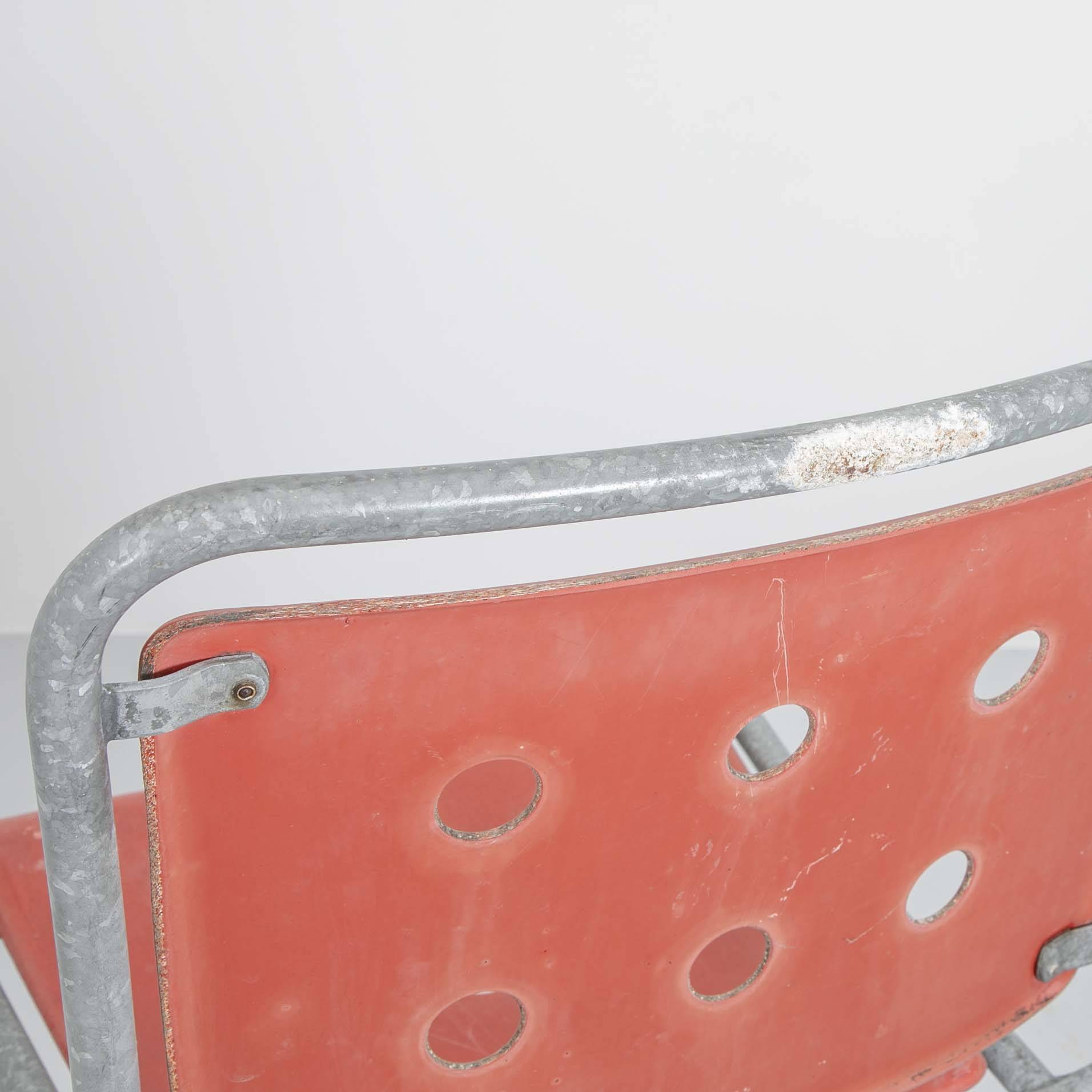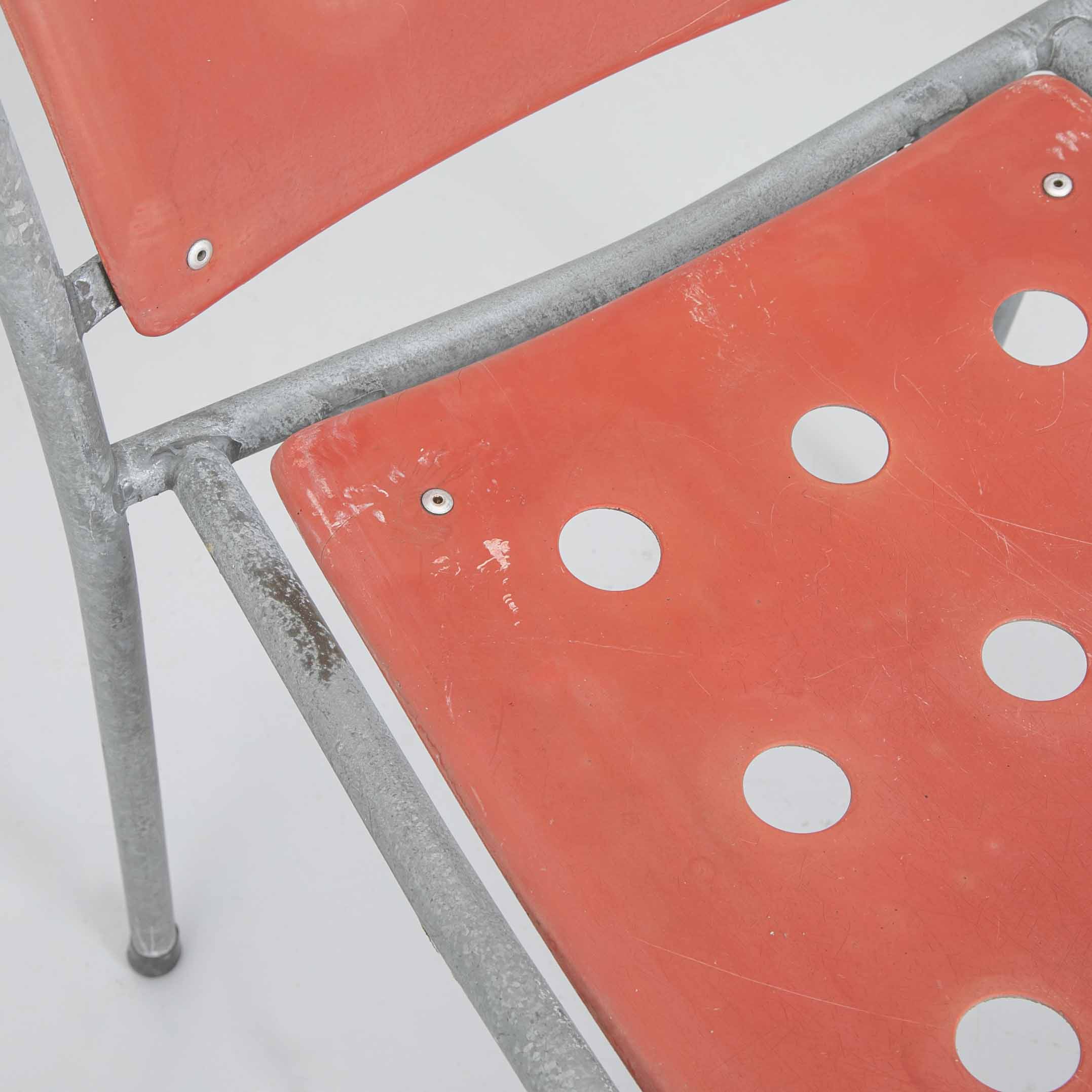 Stella Gartenstuhl/ Rot. Gestell aus feuerverzinktem Stahl, Sitz- und Rückenfläche aus rotem Fiberglas. Mit Gebrauchsspuren.