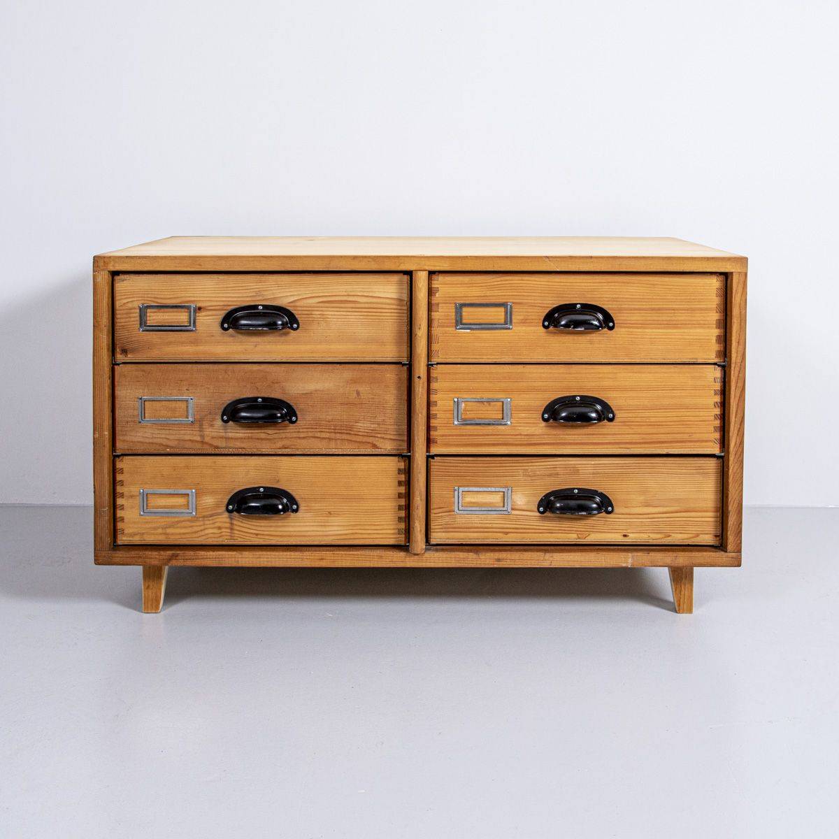 Schubladen sind unterteilt in 3 Reihen mit Fächern.