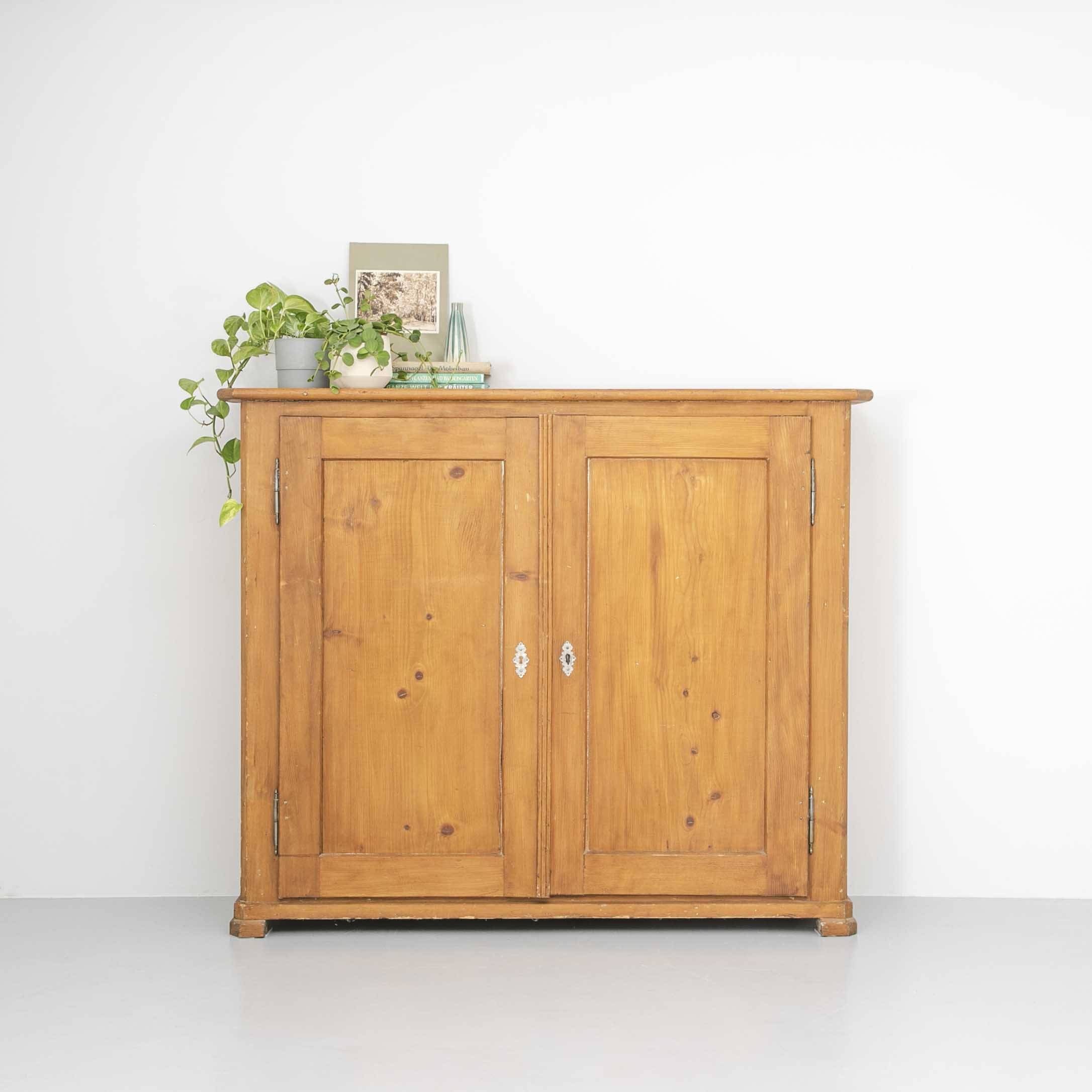 Tannenschrank mit Patina. Hergestellt aus massivem, lackiertem Tannenholz. Innen zwei feste Tablare. Abschliessbar. Das Möbel soll eine Farbe oder ein neues Polster bekommen?