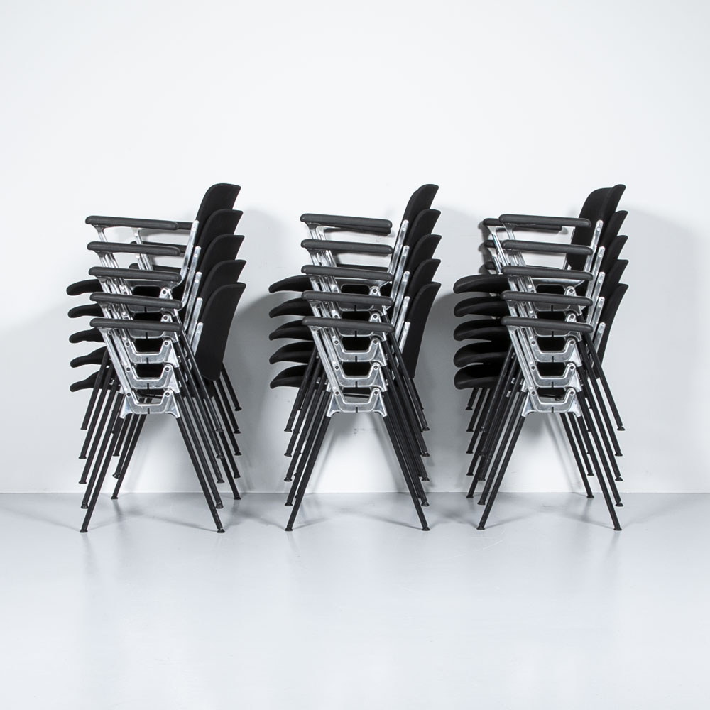 Thonet Armlehnstuhl Nr 81 mit Patina. Entworfen im Jahr 1904. Gestell aus schwarz lackiertem Bugholz, Sitzfläche aus schwarz lackiertem Sperrholz. Armlehnenhöhe 75cm. Stückpreis.