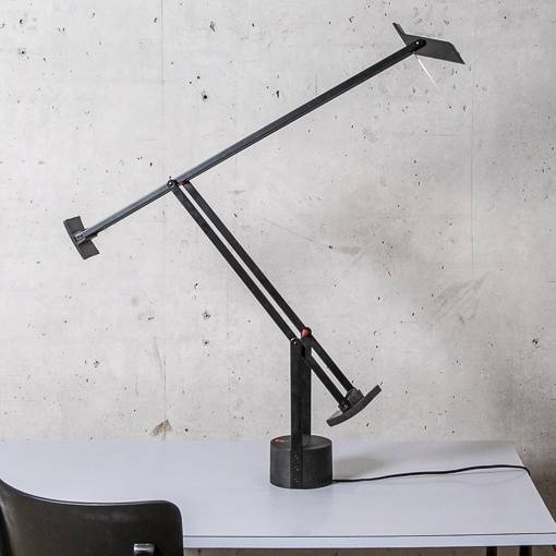 Tizio Tischlampe von Richard Sapper für Artemide. Die Arme der Leuchte lassen sich frei ausrichten und drehen. Leuchtenkopf und Gegengewichte sorgen für stabilen Stand. Der Kopf von Tizio kann unabhängig vom Leuchtenkörper ausgerichtet werden, sodass das Licht genau dorthin fällt, wo Sie es benötige
